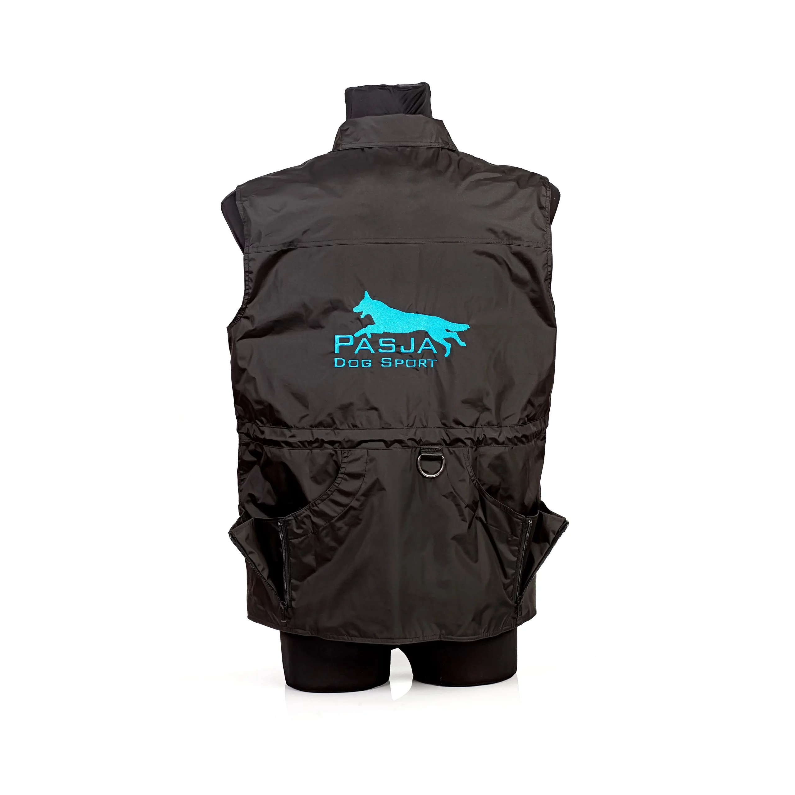 Kamizelka treningowa Spring  Pasja Dog Sport , wykonana z materiału wodoodpornego. Dwie duże dolne kieszenie, górne zapinane na zamek. Dodatkowa kieszeń wewnątrz kamizelki. Z przodu i z tyłu uchwyt do przypięcia linki. . Haft na górnej kieszeni i z tyłu na plecach. Wewnątrz oddychająca podszewka . Regulacja w pasie.